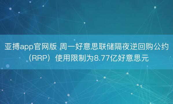 亚搏app官网版 周一好意思联储隔夜逆回购公约(RRP)使用限制为8.77亿好意思元