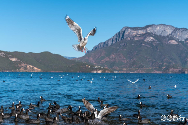 大洛水村摩梭风情拉满,清晨乘猪槽船驶向湖中,晨雾里海鸥云集。走婚桥是草海上的浪漫地标,木桥配金色芦苇荡。