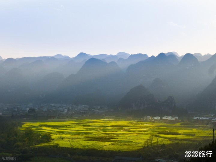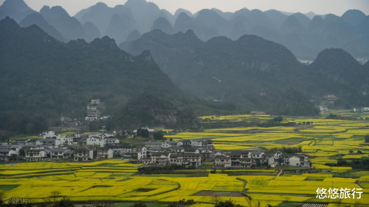 北方地区仍被白雪覆盖时,兴义万峰林上千亩的油菜花已经悄然绽放。2月中下旬盛花期,芬芳馥郁,灿烂耀眼。