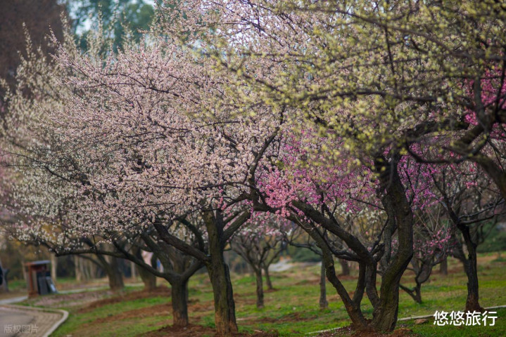 雨花台梅岗,景致好,有访梅亭、问梅阁、寒香轩、曲廊四部分,窗景是一绝。玄武湖最佳赏梅点是梁洲闻鸡亭附近的梅花隧道。