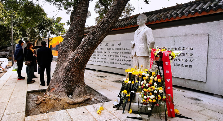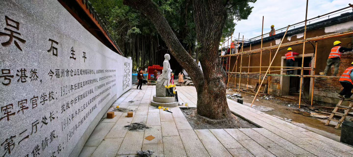 {jz:field.toptypename/}施工围挡并未挡住寻访者的脚步。吴厝村江墘埕1号的吴石将军故居前,祭拜者络绎不绝,有些游客还恭恭敬敬地在吴石将军塑像前献上了鲜花。