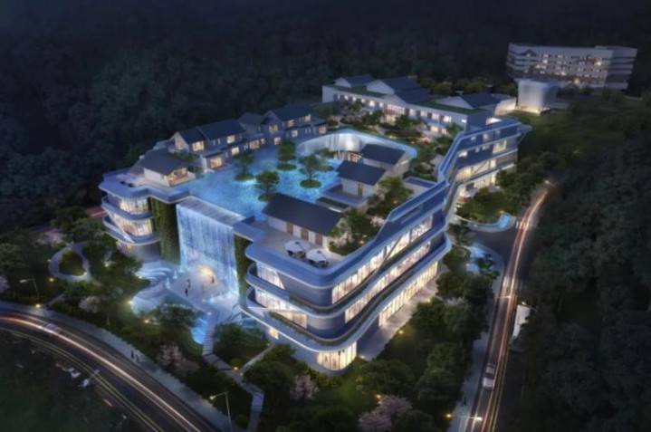 据阿里法拍网显示,标的名称为浙江恒晟文旅发展有限公司名下的“泉岭名邸”住宅项目、“泉岭名邸酒店”项目的土地使用权及其在建工程,土地使用经营权及小部分通用设备。03-02地块的泉岭名邸酒店项目,已结顶,仅完成土建部分建设,内部为毛坯未装修状态。酒店4幢,总建筑面积43,487.88㎡,地上部分面积合计29,896.38㎡。标的有抵押有查封,项目中存在局部山体滑坡的风险。