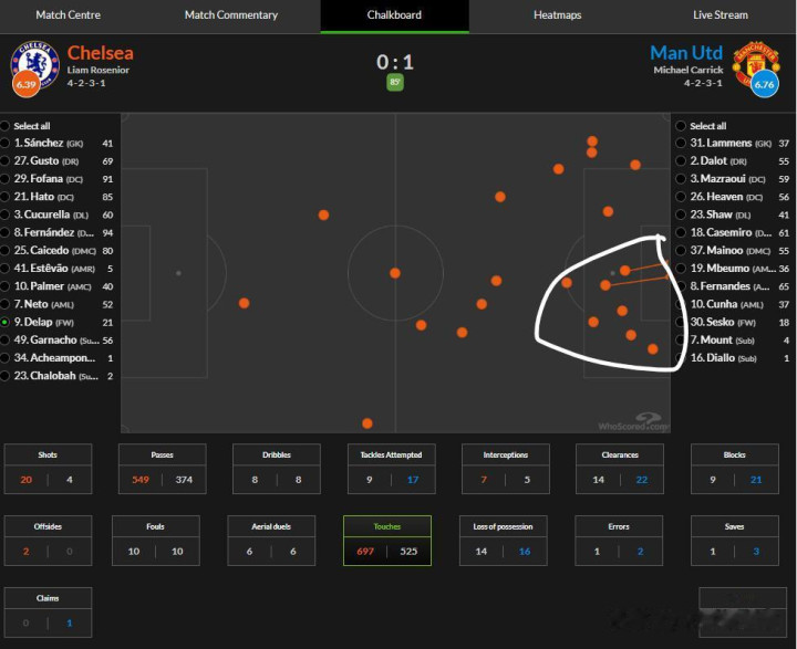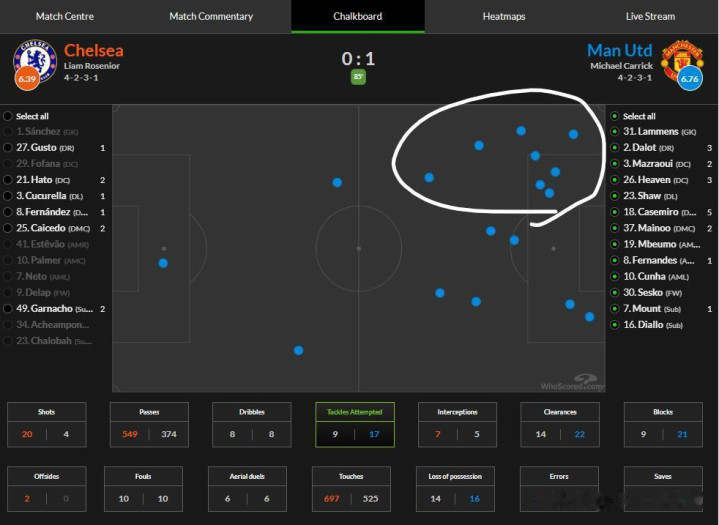 而曼联这场比赛作念得好的场所,等于边后卫立住了。达洛特、卢克肖都莫得让切尔西的边锋找到低廉。颠倒是达洛特这一侧,让加纳乔完全占不到低廉,过东谈主简直都是失败的,边中谈判也被堵截了。