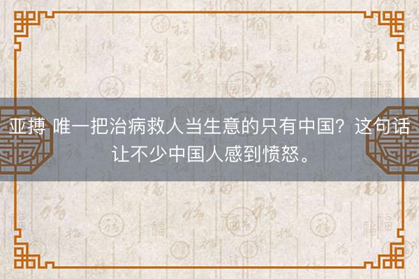亚搏 唯一把治病救人当生意的只有中国?这句话让不少中国人感到愤怒。