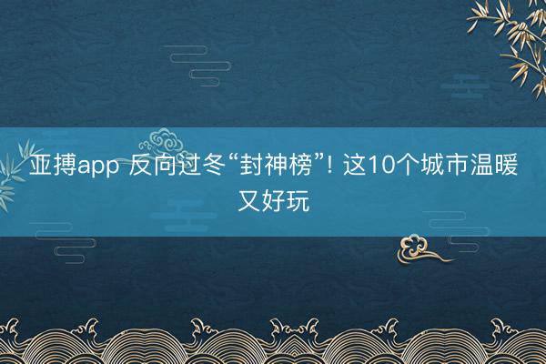 亚搏app 反向过冬“封神榜”! 这10个城市温暖又好玩