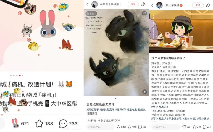 而针对强圈层IP,平台推出定制化“点赞特效”功能,将IP形象嵌入用户的互动行为中,形成轻量但高频的记忆锚点。例如《驯龙高手》的没牙仔、《罗小黑战记》的小黑猫,都通过独特的点赞特效在映期内强化了圈层狂欢感,显著提升笔记互动率与内容曝光。