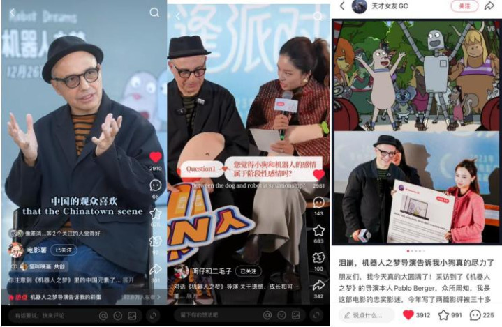 《机器人之梦》便是这套打法的成功范本。在这部奥斯卡提名电影重映之际,游学团邀请达人@ 许文婷 @猫咪映画 等专访导演Pablo Berger,从角色解读、细节揭秘角度带来抢先预热,切入影片独家幕后内容,吸引核心粉丝关注电影重映,在上映阶段显著拉升站内讨论热度。