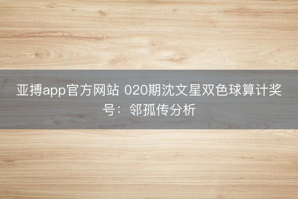 亚搏app官方网站 020期沈文星双色球算计奖号:邻孤传分析
