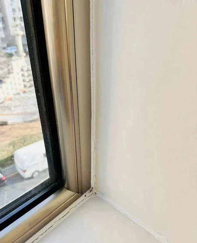 关键点:石膏板与窗框间留3mm缝,打白色中性胶,遮收缩