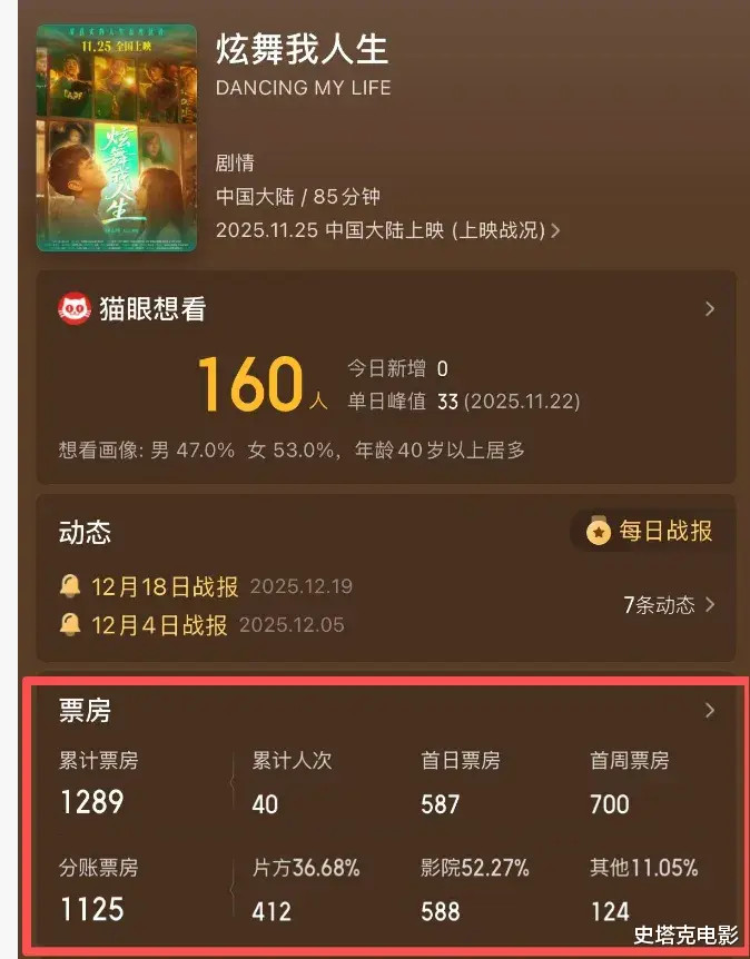 而《炫舞我人生》上映之后,没热度没宣发,没爆点,很难吸引观众,因此,电影院都不给排片了。
