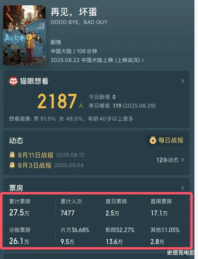 《再见坏蛋》只有20多万的票房成绩,吴京还专门发了视频给电影做了宣传,但观众们好像不太买账;