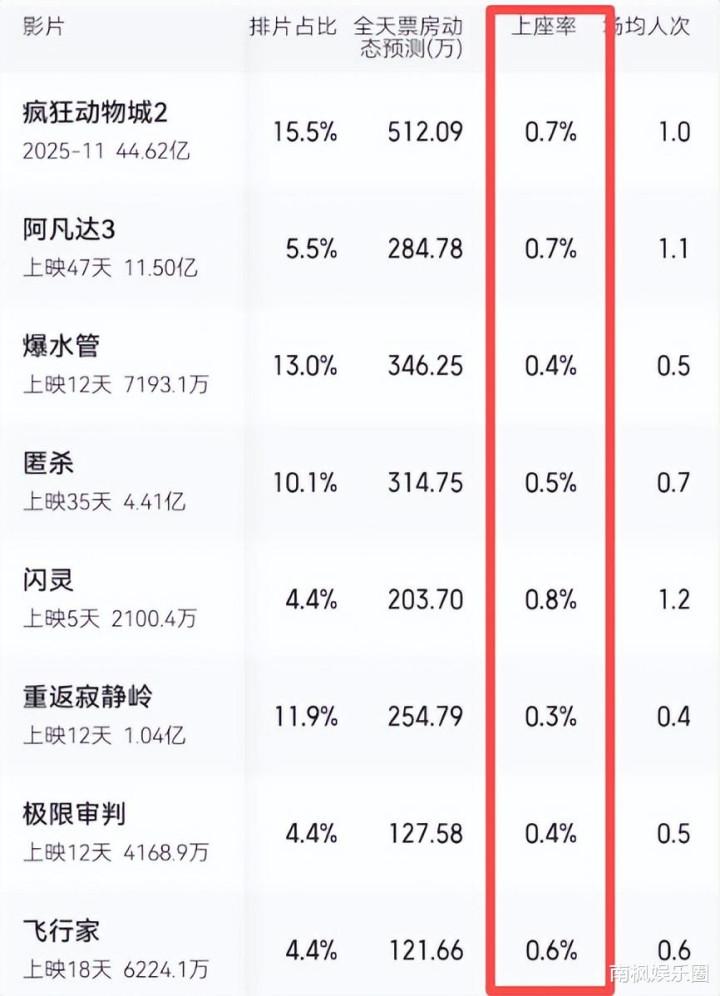 没错,它就是凭借4%的排片挺进日票房排行前五,上座率更是秒杀所有影片。