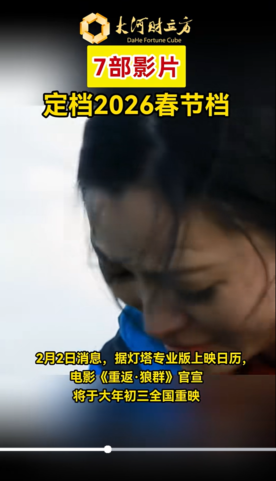 据三湘都市报,灯塔专业版上映日历,电影《重返·狼群》官宣将于大年初三全国重映。截至当前,已有7部影片定档2026春节档。