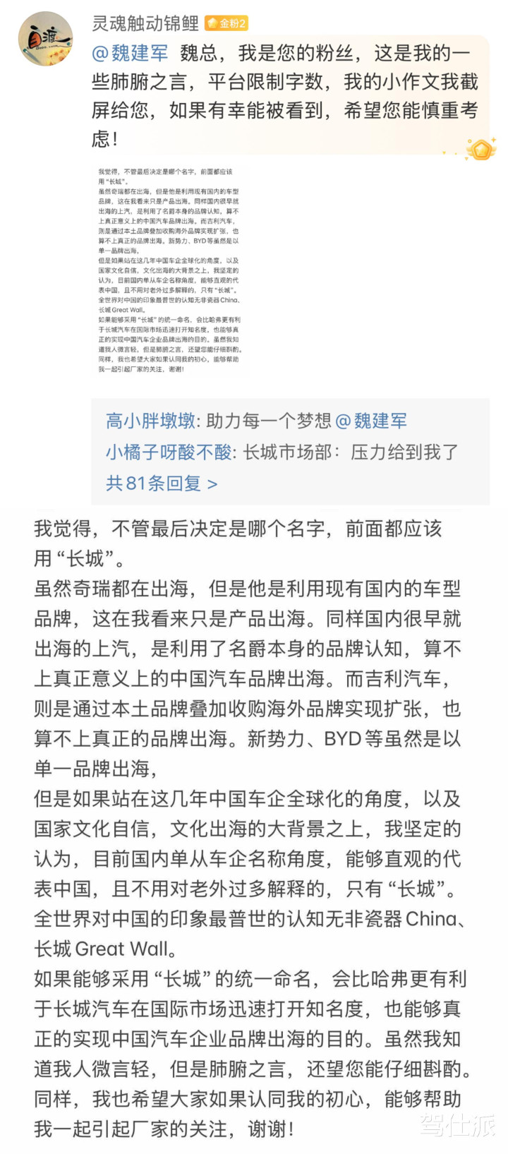 先看这场征名为何出圈,中枢就两点:魏建军的个东说念主IP,加上刻进长城骨子里的用户共创。