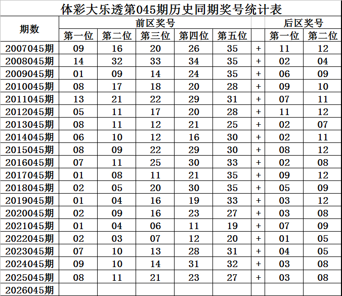 王守礼体彩大乐透第2026045期历史同时定位升重降号码分析: