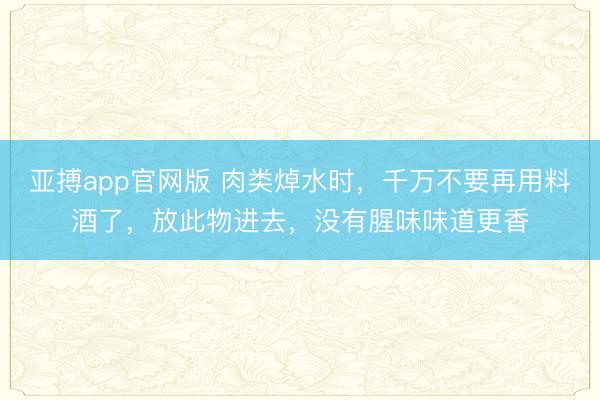 亚搏app官网版 肉类焯水时,千万不要再用料酒了,放此物进去,没有腥味味道更香