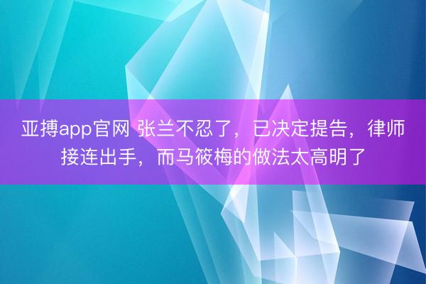 亚搏app官网 张兰不忍了,已决定提告,律师接连出手,而马筱梅的做法太高明了
