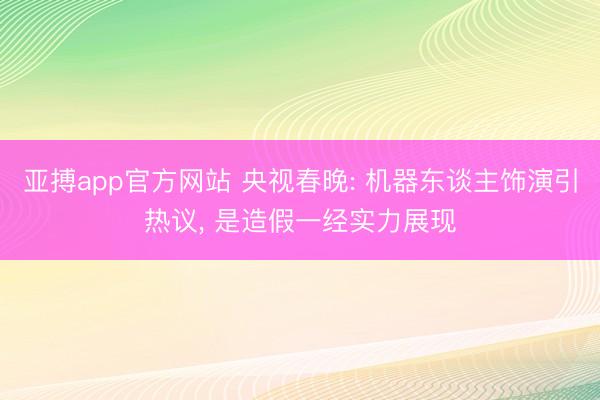 亚搏app官方网站 央视春晚: 机器东谈主饰演引热议, 是造假一经实力展现