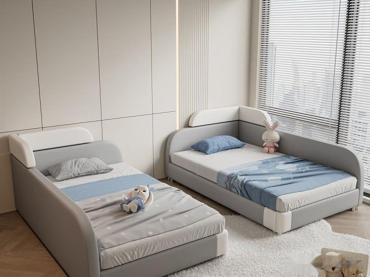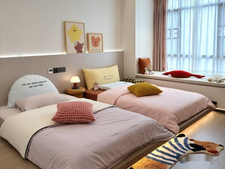 还有一种方式,就是设计为两个单人床,平时可以分开,需要的时候还把单人床合在一起。