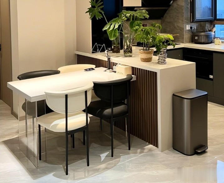 看一个家庭餐厅是否高级,不是说你用上了多贵的餐桌,而是看是否用起来顺手,动线是否合理,对于小户型家庭,没必要去装长餐桌,可以试试以上这些设计,很好用。
