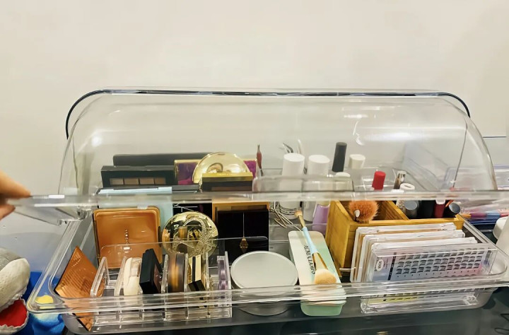 化妆品堆在桌子上,不但容易积灰,还显得乱七八糟。亚克力食品盒,不仅能让化妆品整齐得像是刚刚放进的一样,灰尘也被隔绝在外,透明的设计让我们一眼就能找到需要的那个口红,拿取时特别方便。