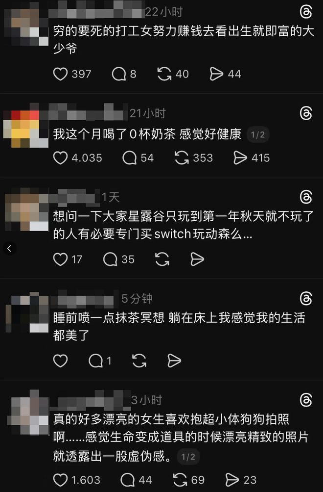 内容上给人的感觉也跟X不太一样,这里没有什么大新闻,也没那么多懂王在指点江山。满屏都是一些碎碎念,关于自己的生活、对事物的看法,又或者是一些能引起讨论的话题。