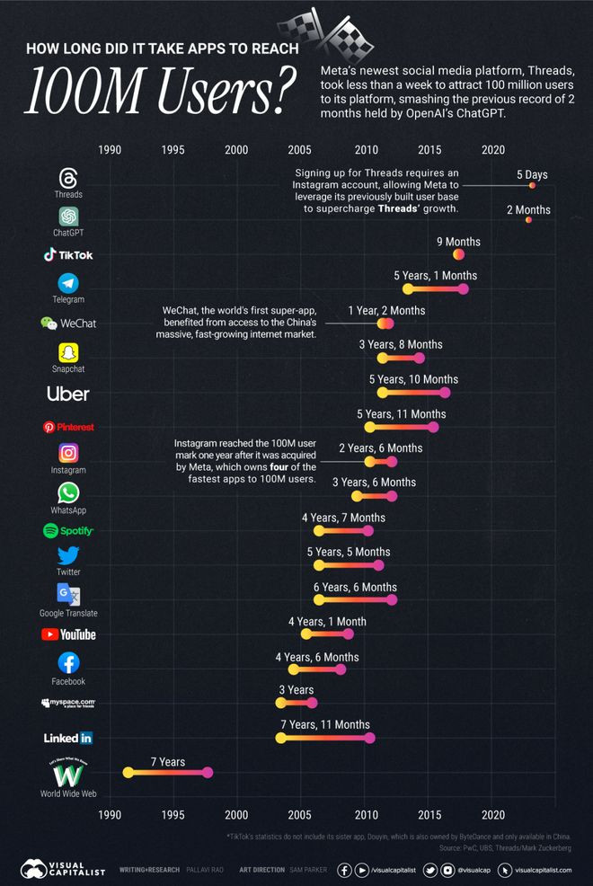 事实上,Threads自打诞生起,数据就一直好得离谱。
