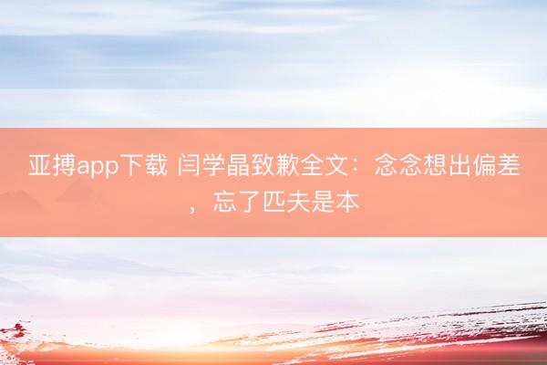 亚搏app下载 闫学晶致歉全文:念念想出偏差,忘了匹夫是本