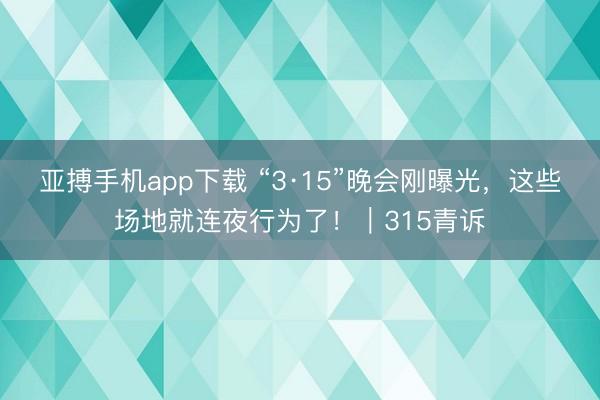 亚搏手机app下载 “3·15”晚会刚曝光,这些场地就连夜行为了!|315青诉