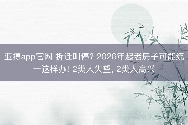 亚搏app官网 拆迁叫停? 2026年起老房子可能统一这样办! 2类人失望, 2类人高兴