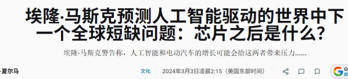 2024-03-03有趣的工程《埃隆·马斯克预测人工智能驱动的世界中下一个全球短缺问题:芯片之后是什么?》