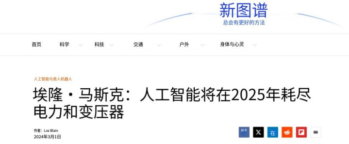 2024-03-01新图谱《埃隆·马斯克:人工智能将在2025年耗尽电力和变压器》