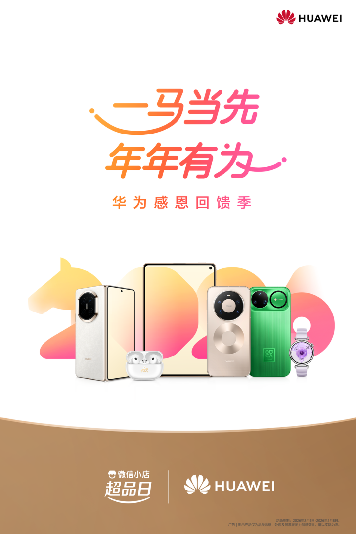 说到这儿,2月6日-8日,微信小店将开启华为超级品牌日活动,可以给亲朋好友赠送限量礼盒,比如日照金山礼盒、周大福礼盒、FreeBuds Pro 5马年典藏版、WATCH GT6情人节礼盒、一马当先通用礼盒,亚搏手机app下单后对方就能能收到“蓝包”提醒,有礼又有面。大家也可以在这几天去指定店铺(华为跃享、华为奕数、华为弘执、华为辰扬互联、华为手机专卖店)抢购Mate 80 Pro/Mate 80 Pro Max/Mate X7等爆款新品,作为给自己的新春礼物。