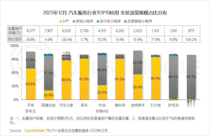 5.1 汽车服务行业APP主导综合服务,小程序赋能轻量场景,在加油、充电、洗车、保养等标准化、高频率的服务场景中,小程序凭借便捷性与社交裂变优势,已成为主流入口