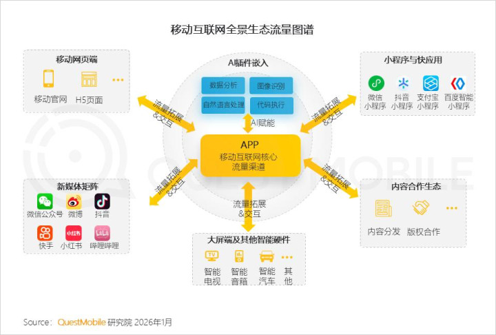 6、移动互联网生态正迈向以APP为核心枢纽,亚搏AI技术驱动、多端深度协同与生态融合共促流量增长的新范式