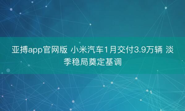 亚搏app官网版 小米汽车1月交付3.9万辆 淡季稳局奠定基调