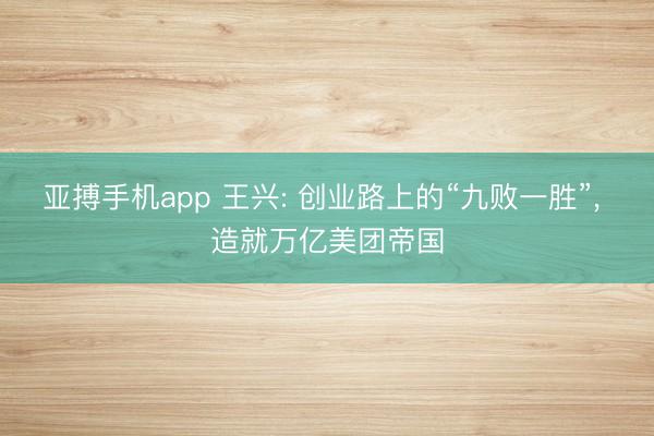 亚搏手机app 王兴: 创业路上的“九败一胜”, 造就万亿美团帝国