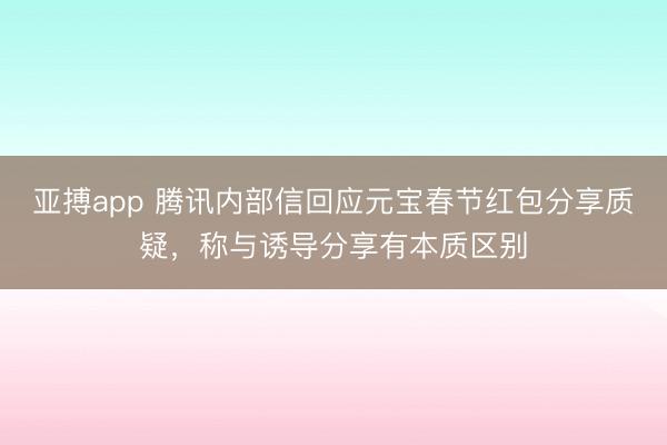 亚搏app 腾讯内部信回应元宝春节红包分享质疑,称与诱导分享有本质区别