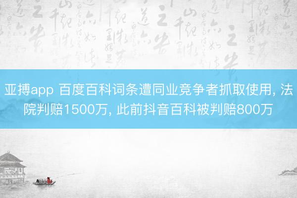 亚搏app 百度百科词条遭同业竞争者抓取使用, 法院判赔1500万, 此前抖音百科被判赔800万
