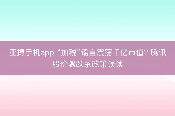 亚搏手机app “加税”谣言震荡千亿市值? 腾讯股价骤跌系政策误读