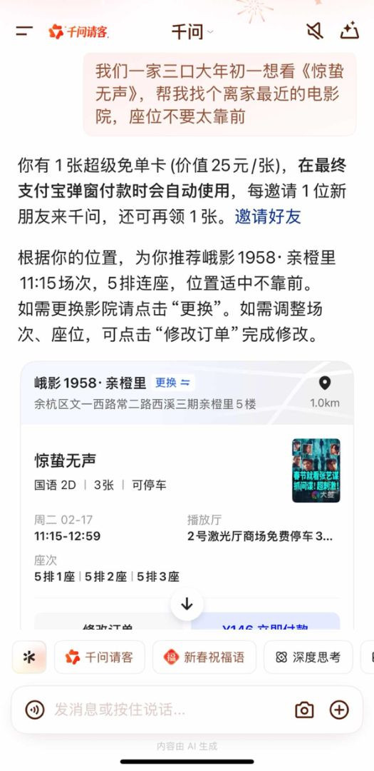 亚搏手机app下载 春节档上映倒计时, “千问帮我买电影票”订单量暴增500%
