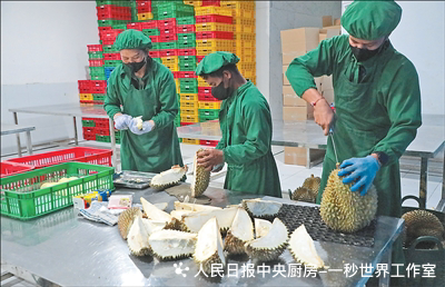 阿玉从2005年启算作念榴莲生意,她的公司是帕里吉莫乌通县界限最大的原土公司之一,有利从事榴莲培植、采购、加工、出口等业务。“这片培植园占地约100公顷,有1万多棵榴莲树。咱们也从相近农户那边收购榴莲。”阿玉一边先容,一边用刀柄轻轻敲击榴莲,通过声息判断锻真金不怕火度。她挑出一颗品性上乘的榴莲请记者回味,“现时锻真金不怕火的主如果金枕榴莲。很快,猫山王榴莲也要锻真金不怕火了。”