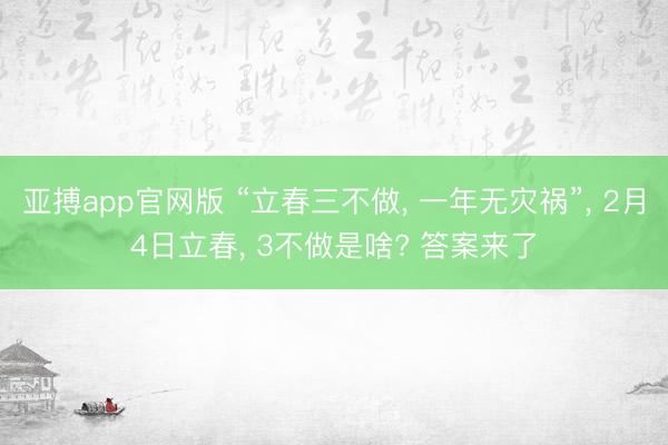 亚搏app官网版 “立春三不做, 一年无灾祸”, 2月4日立春, 3不做是啥? 答案来了