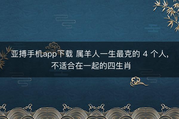 亚搏手机app下载 属羊人一生最克的 4 个人, 不适合在一起的四生肖