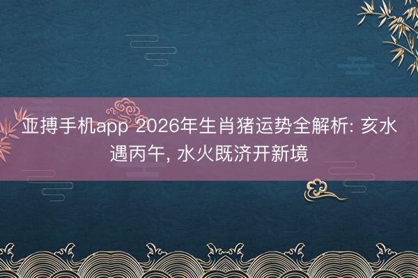 亚搏手机app 2026年生肖猪运势全解析: 亥水遇丙午, 水火既济开新境