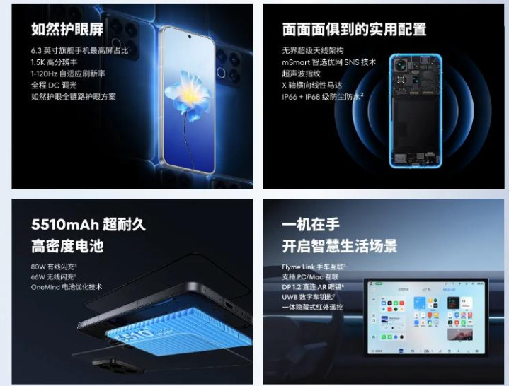 在设计与体验层面,魅族22延续71mm舒适握持宽度,采用前后对称四等R角设计与0.8mm四等边直面屏,6.3英寸旗舰手机最高屏占比的“超然护眼屏”支持1.5K分辨率与1-120Hz自适应刷新率,搭配全程DC调光与如然护眼方案,长时间使用也能有效缓解视觉疲劳。此外,无界超级天线架构、mSmart智选双网技术与IP66+IP68级防尘防水配置,进一步提升了日常使用的可靠性。