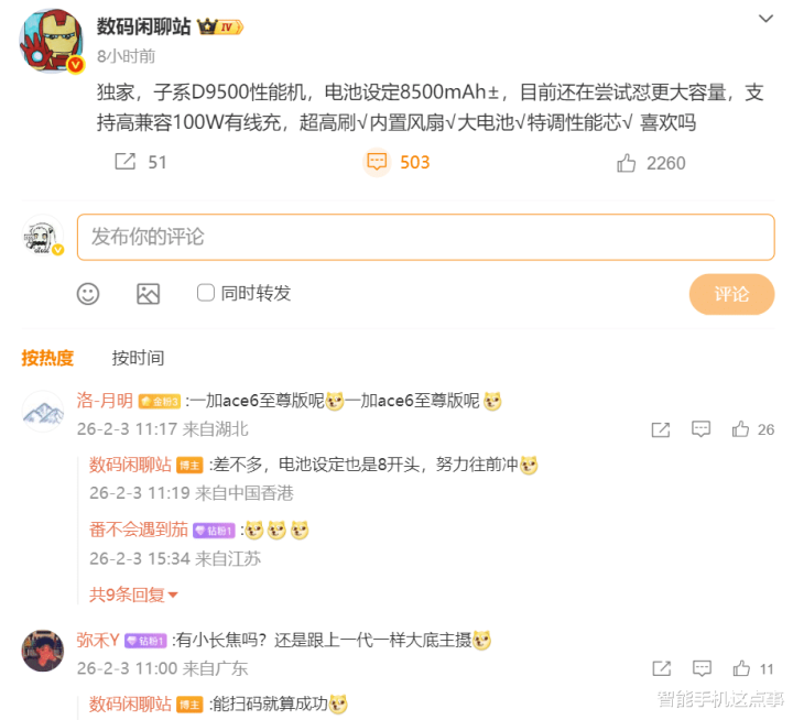 据博主透露,一加Ace6至尊版的电池设定也是8开头,同样在努力往前冲,显然是在对标K90至尊版。