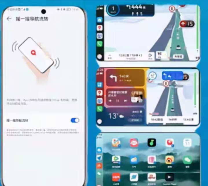 第一个大招:“摇一摇”万物互联,比语音更快捷。升级到鸿蒙5.1以上系统后,HiCar支持“摇一摇”功能:手机上刷到想去的地址,摇一摇手机,导航自动同步到车机;手机里听的歌,上车摇一摇,直接切换到车机音响,连播放进度都不会断;甚至停车时看的视频,摇一摇就能投屏到车机大屏,全家出行时后排乘客也能追剧。这个功能特别适合地址复杂、不好语音描述的场景,比喊“小艺”还省事。