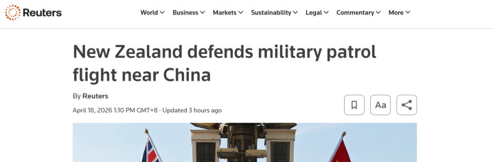 4月17日,中国际交部指出,新西兰P-8A巡查机在中国黄海和东海空域及海域“捏续进行抵近傍观和骚扰行动,该步履毁伤了中国安全利益,加多了歪曲误判风险,并严重干预了民航航行递次。中方已作出坚决草率,并向新西兰方面提议严正抗议。”