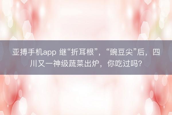 亚搏手机app 继“折耳根”,“豌豆尖”后,四川又一神级蔬菜出炉,你吃过吗?